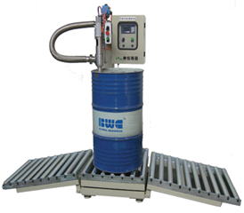 Miêu tả quy trình: Đặt thùng rỗng lên cân băng truyền rulo, nhấn Star để bắt đầu rót chất lỏng vào thùng, khi số kg đạt đến mức cài đặt, đầu cân sẽ xuất tín hiệu điều khiển tắt vòi bơm, rồi nhấc vòi ra khỏi miệng thùng (có thể báo đèn hoặc còi để biết cân xong). Đẩy thùng qua băng truyền phụ để hoàn tất quy trình.
